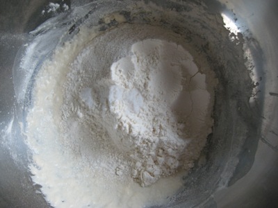 ぬるま湯と砂糖、強力粉、